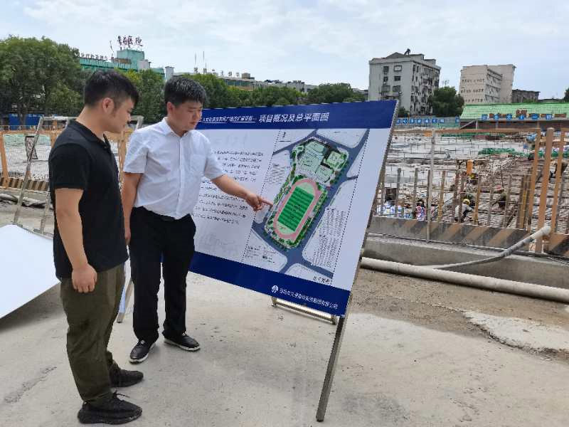 工人文化宮及東風廣場改擴建項目負責人宋維(右)講解施工方案