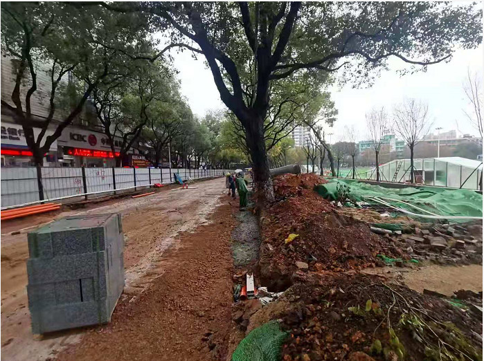 施工期間,為方便市民出行,針對施工路段電力、燃氣、自來水、通訊光纜,及雨污水管埋設(shè)復(fù)雜的情況,市交投集團多次主動協(xié)調(diào) 17種管線權(quán)屬單位,最終達成了統(tǒng)一遷改要求。同時,在施工中,他們采用了半封閉模式及北向南單向行駛,在沿街各小區(qū)、街道路口開放臨時通道,安排專人值守,方便車輛通行、居民進出。施工過程中鋪設(shè)鋼板、設(shè)置安全圍欄、警示燈、警示標牌,最大范圍方便市民??紤]到從步行街、橋西方向進入南輔道及云夢路車輛較多,單向行駛交通管制后,交通較為擁堵,市交投集團與友阿購物中心、市城管局、市交警支隊等多方溝通,爭取到了一條臨時通道,即借道友阿廣場開辟北往南進入南輔道的專用車道。此舉一定程度上緩解了該路段的交通壓力。